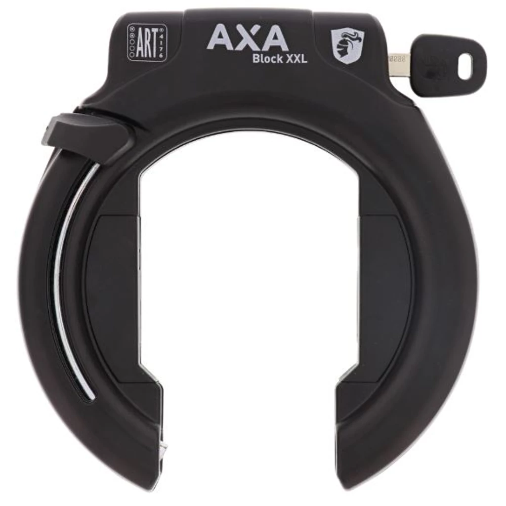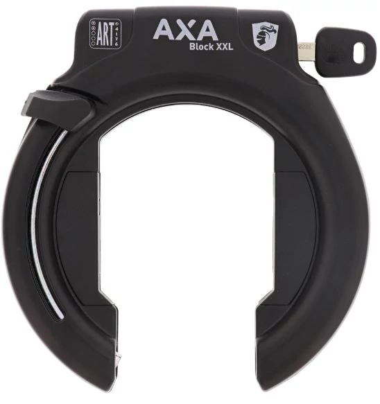 Az AXA Block XXL egy kiváló minőségű vázas zár, amely lehetővé teszi, hogy ULC dugaszoló láncot vagy UPI dugaszoló kábelt illesszen a zár oldalába, és így rögzítse kerékpárját egy rögzített tárgyhoz. A keretzár optimális biztonságot nyújt a fúrásgátló hengernek és az edzett acél tartónak köszönhetően. Az ergonomikus vezérlőgomb és az online kulcsszolgáltatás maximális kényelmet biztosít. Az AXA Block XXL extra széles nyílással rendelkezik, így széles sárvédők vagy ballon abroncsok is elférnek benne.