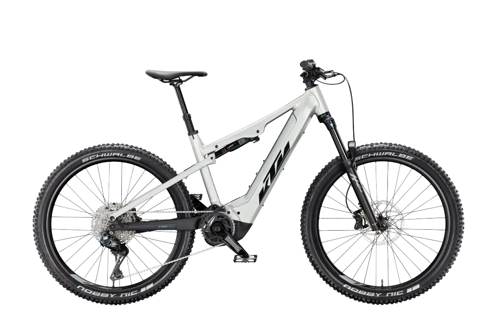 KTM MACINA LYCAN 772 Di2 L/48 Összteleszkópos elektromos MTB kerékpár STARLIGHT SILVER+MATT BLACK színben