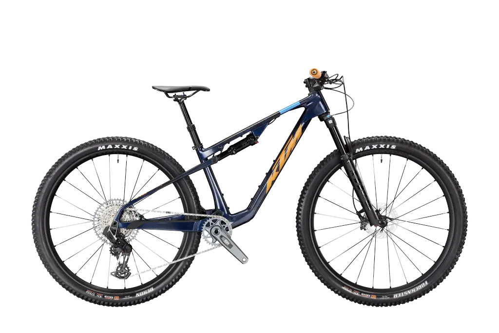 KTM SCARP MT MASTER S/38 Összteleszkópos MTB kerékpár TRANSPARENT BLUE ON CARBON színben